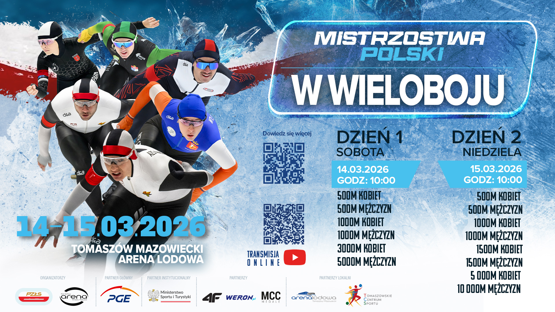 Arena Lodowa w Tomaszowie Mazowieckim będzie areną zmagań najlepszych polskich łyżwiarzy szybkich, którzy rywalizować będą w Mistrzostwach Polski w Wieloboju, od 14-15 marca 2026 roku. Zawody będą ostatnimi zmaganiami panczenistów w sezonie 2025/2026.
