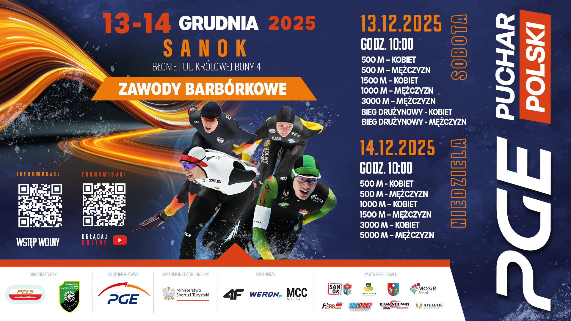 W dniach 13-14 grudnia 2025 r. tor lodowy w Sanoku stanie się areną ostatnich tegorocznych zmagań w ramach PGE Pucharu Polski w łyżwiarstwie szybkim.