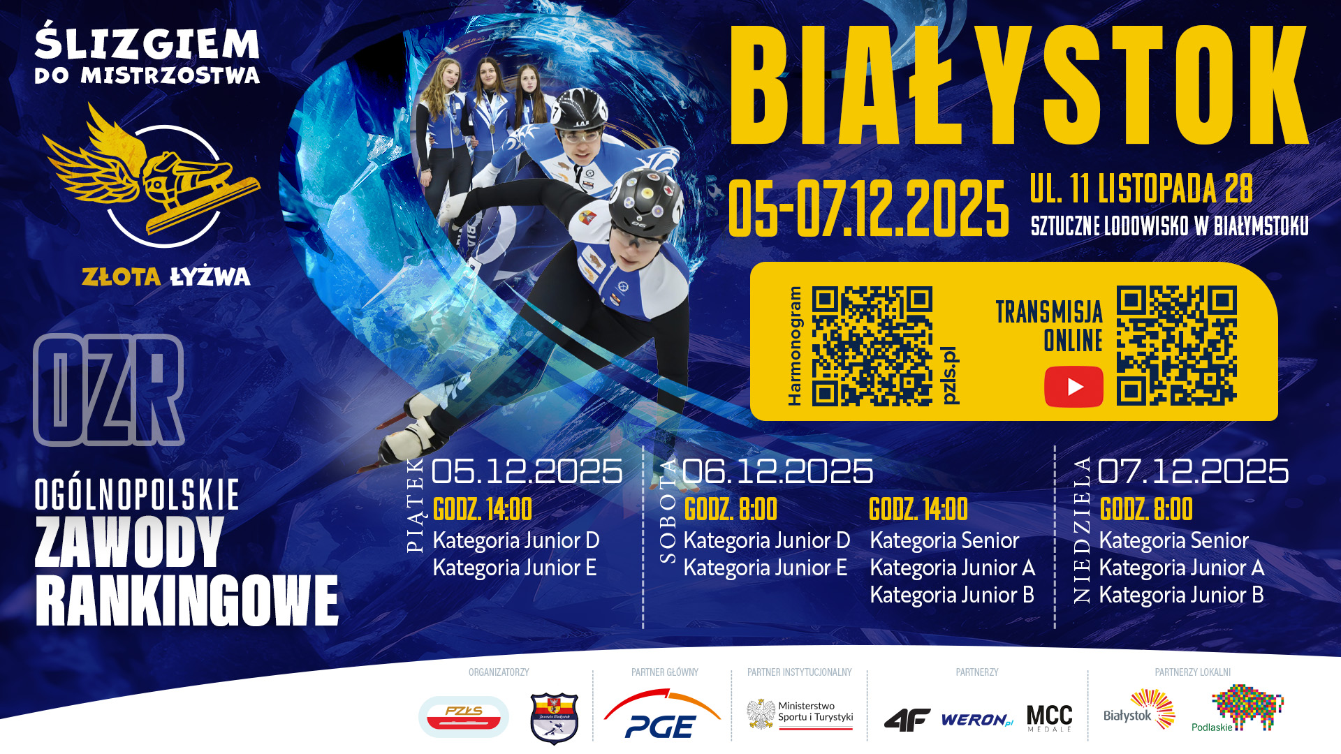 Po emocjonujących zawodach w Elblągu, rywalizacja w ramach programu „Złota Łyżwa” przenosi się do Białegostoku. W dniach 05–07 grudnia 2025 r. na tafli lodowiska BOSiR rozegrana zostanie czwarta edycja Ogólnopolskich Zawodów Rankingowych w short tracku sezonu 2025/2026.